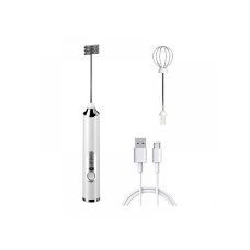 Електричний міксер-вінчик для збивання спінювання молока капучінатор з акумулятором 2 насадки білий