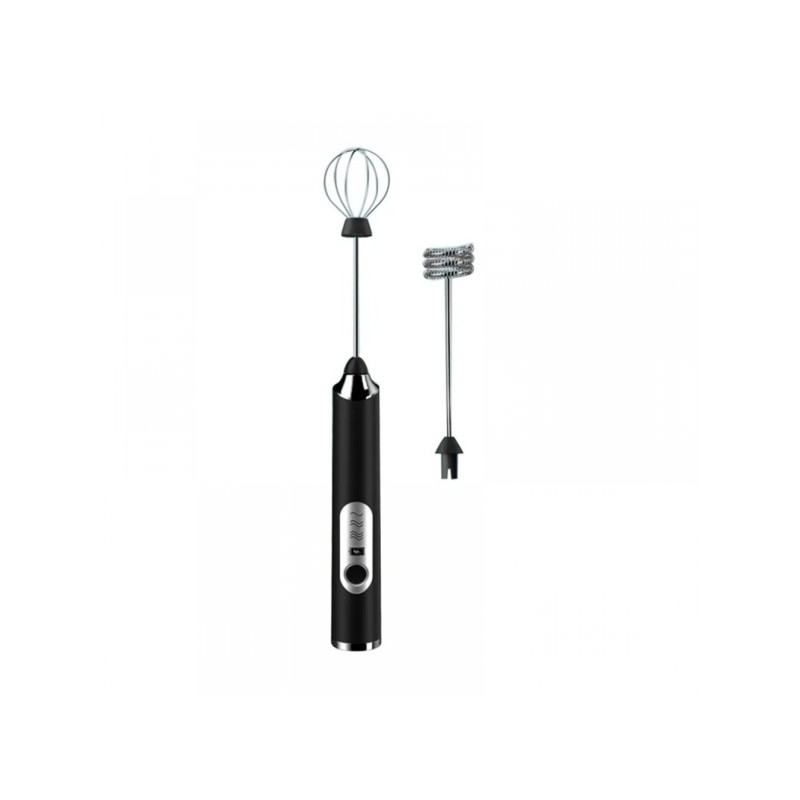 Електричний міксер-вінчик для збивання спінювання молока капучінатор з акумулятором 2 насадки чорний