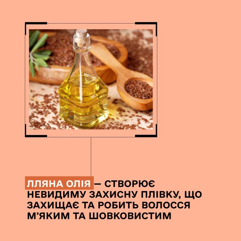 Активными компонентами являются Льняное масло – создает невидимую и нежирную защиту пленку, которая окутывает волосы и делает его мягкими и шелковистыми;