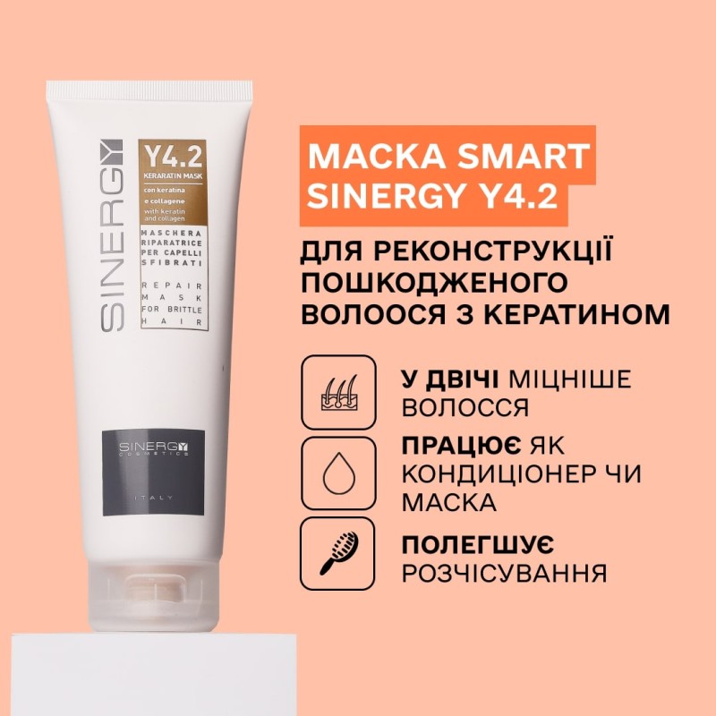 Интенсивная питательная маска Y4.2 Sinergy Mask с кератином и коллагеном для мгновенного восстановления волос, 250 мл