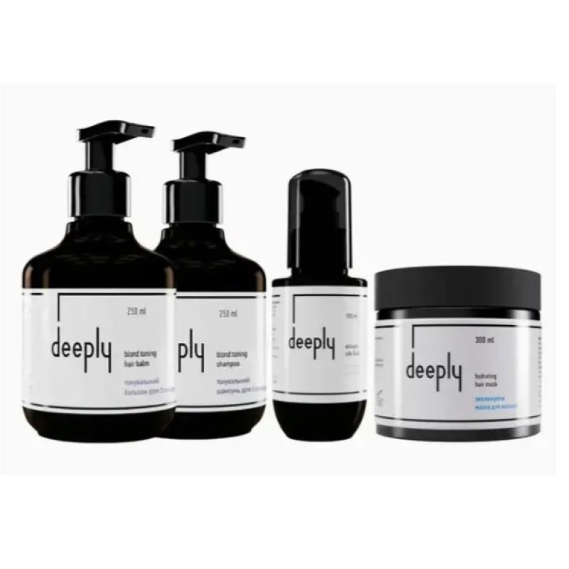 Набор deeply Blond для блонда от желтизны для осветленных волос и сияющего блонда Шампунь, Бальзам, Маска и Флюид 2х250/300/100 мл