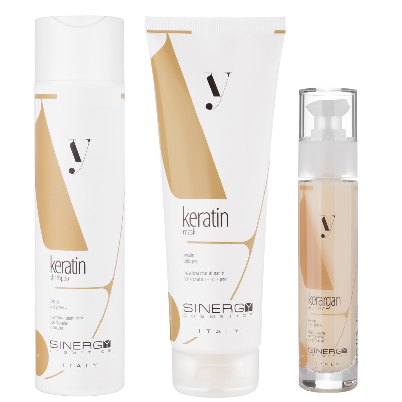 Набор Sinergy Y4 шампунь, маска и сыворотка для поврежденных волос с кератином, 250/250/50 мл