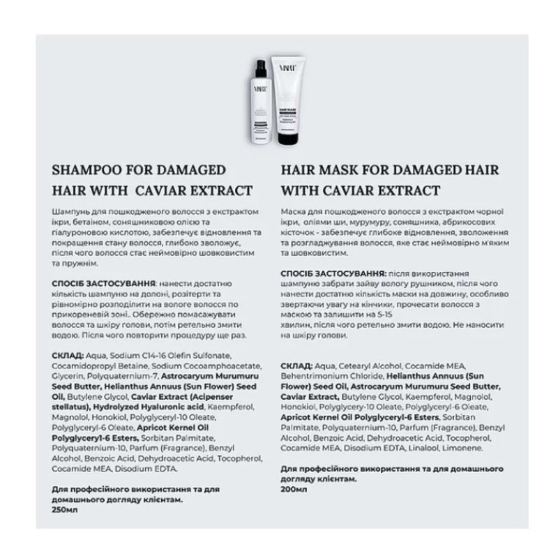Набор VIART DUO with Caviar Extract шампунь и маска для восстановления и разглаживания волос, 2х1000 мл